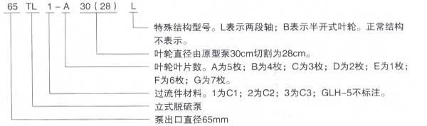 TL安博(中国)立式脱硫泵为立式、轴向吸入、单级、单吸、单壳体、离心式结构。其型号有150TL、100TL、80TL、65TL、50TL、40TL、25TL,适合在流量4m3/h ~360 m3/h,扬程3m~82m工况条件运行,共13种泵型。
