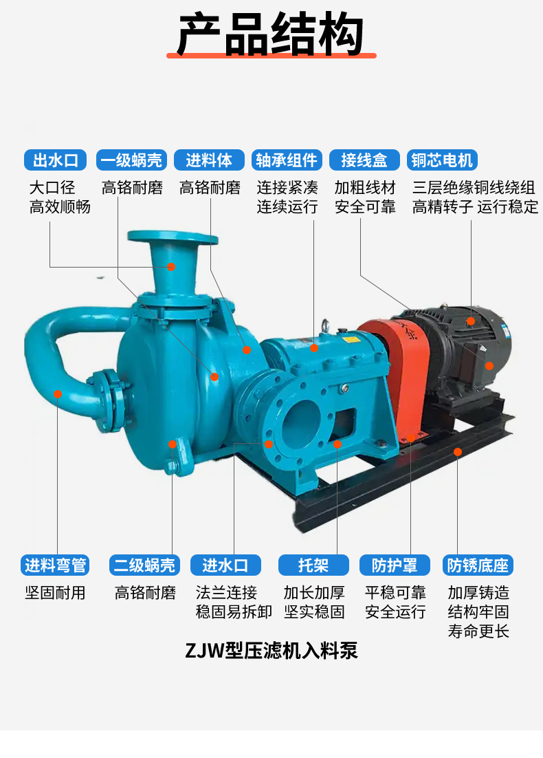 也称压滤机入料泵、压滤机给料泵、压滤机喂料泵。广泛用于洗煤厂、选矿厂、洗沙厂、市政污水处理、泥浆处理、淀粉制药、染料、油漆、皮革、造纸、食品等行业中压滤机的入料。